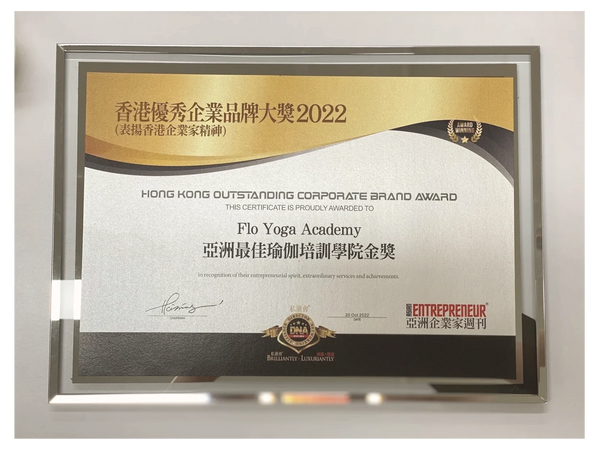 亞洲最佳瑜伽培訓學院金獎
